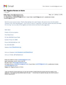 “I am handling Niche by asking our faculty members who are parents and who have another email address than O’Neal’s to fill out a review… I’ve also noticed that you can ‘report’ the negative comments… I wonder if people report on the negative comments enough will they be pulled?”